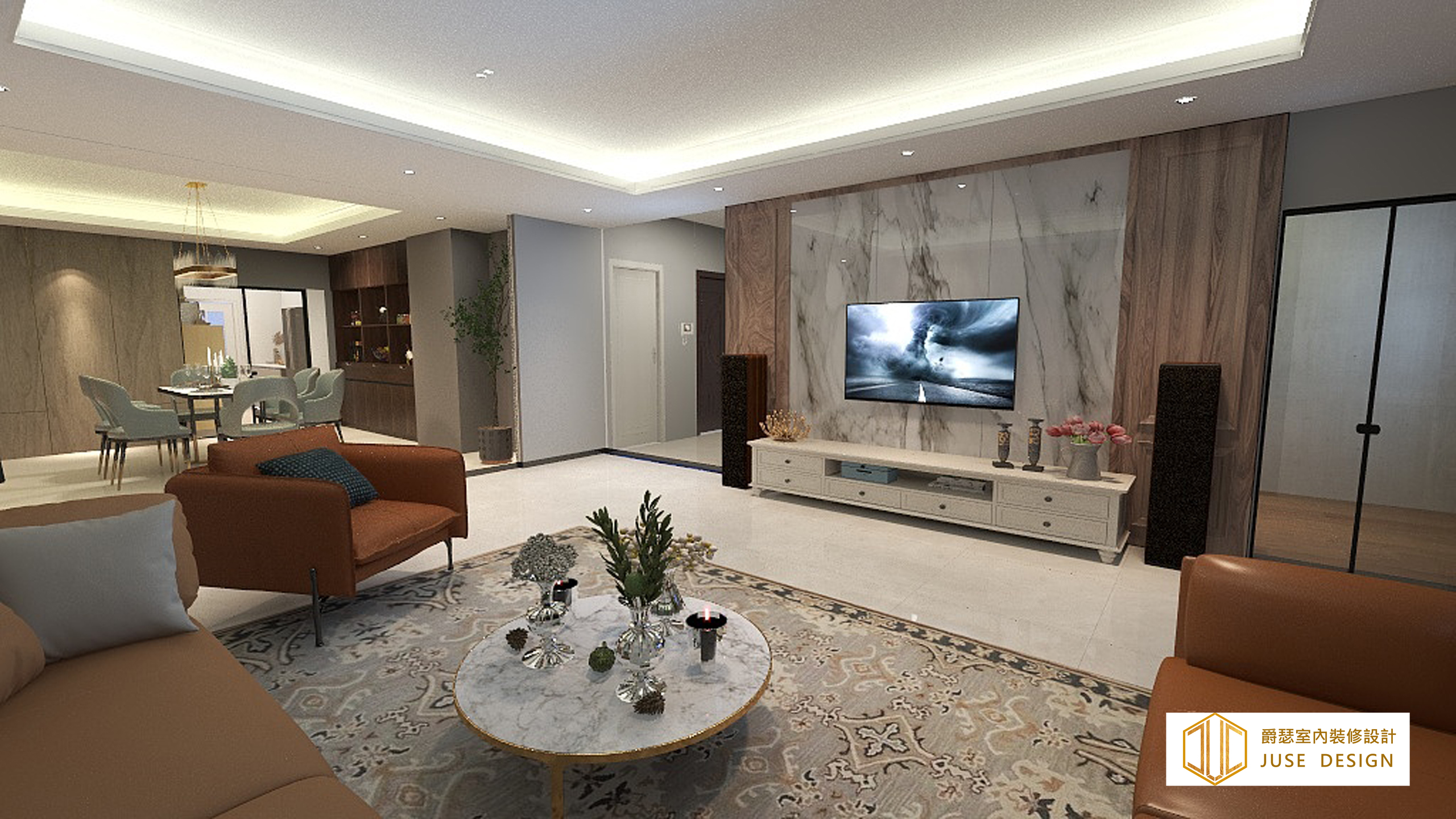 桃園大坪數住宅,用現代結合新古典元素,並以石材、木質材料等做為牆面主要裝飾元素,為顯出住宅獨特品味氛圍,使用現…